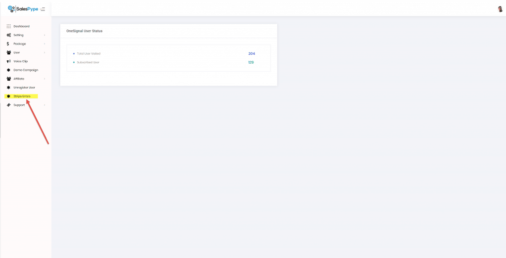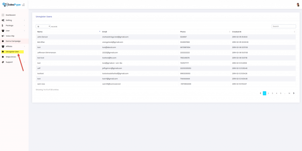 - Click Unregistered User in the SalesPype Dashboard